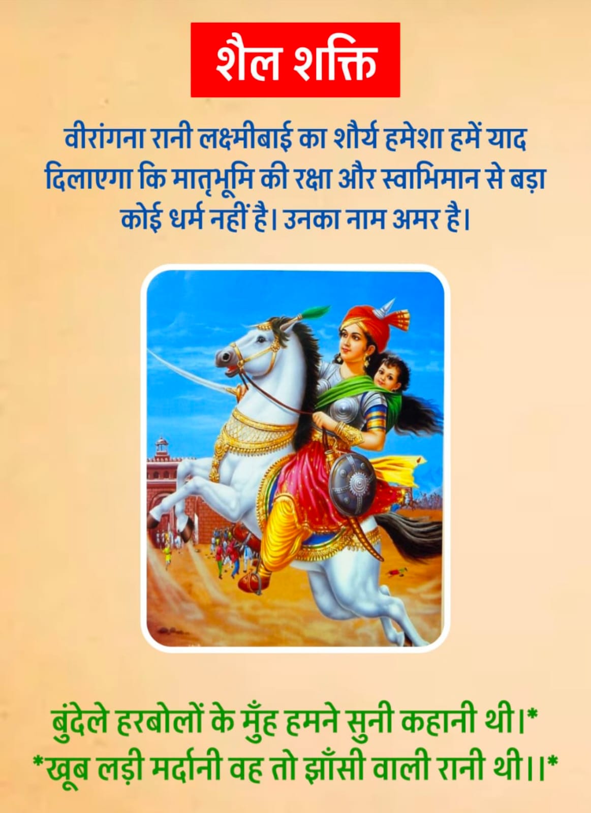 वीरांगना रानी लक्ष्मीबाई का शौर्य हमेशा हमें याद दिलाएगा कि मातृभूमि की रक्षा और स्वाभिमान से बड़ा कोई धर्म नहीं है। उनका नाम अमर है।