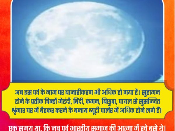 करवा चौथ पर्व के पति पत्नी के समर्पित विश्वास और श्रद्धा के प्रति कुछ पंक्तियाँ सार रूप में कही गई थी- “स्वस्थ दीर्घायु रहूँ मैं यह तुम्हारी कामना है, तन….