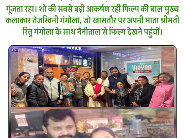 हल्दूचौड़। रियल कैलिबर प्रोडक्शन की हिंदी फीचर फिल्म “विद्या – सपनों की उड़ान” दर्शकों के दिलों में जगह बना रही है। लगातार मिल रही शानदार प्रतिक्रिया के बाद फिल्म….