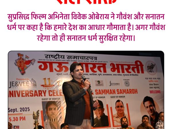 मुंबई। सुप्रसिद्ध फिल्म अभिनेता विवेक ओबेराय ने गौवंश और सनातन धर्म पर कहा है कि हमारे देश का आधार गौमाता है। अगर गौवंश रहेगा तो ही सनातन धर्म सुरक्षित रहेगा।….