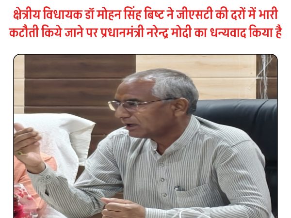 लालकुआं । क्षेत्रीय विधायक डॉ मोहन सिंह बिष्ट ने जीएसटी की दरों में भारी कटौती किये जाने पर प्रधानमंत्री नरेन्द्र मोदी का धन्यवाद किया है तथा उनका आभार व्यक्त….