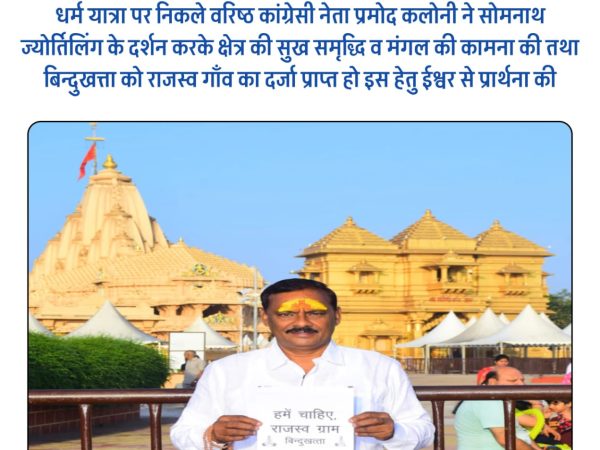 बिन्दुखत्ता/ धर्म यात्रा पर निकले वरिष्ठ कांग्रेसी नेता प्रमोद कलोनी ने सोमनाथ ज्योर्तिलिंग के दर्शन करके क्षेत्र की सुख समृद्धि व मंगल की कामना की तथा बिन्दुखत्ता को राजस्व….