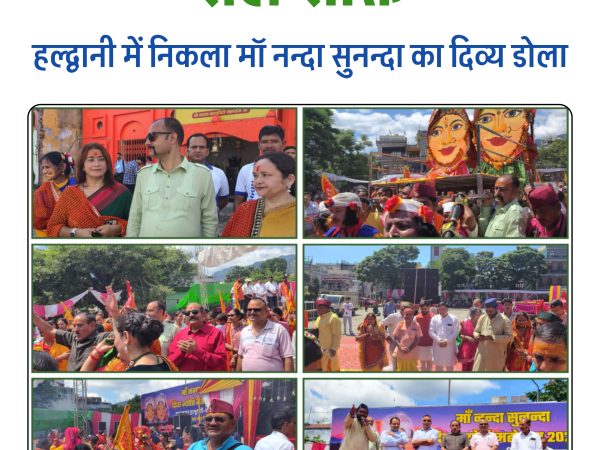 + पूजा अनुष्ठान के बाद गाजे – बाजे, छोलिया नृत्य एवं माता के जयकारों के साथ हल्द्वानी में निकला माँ नन्दा सुनन्दा का दिव्य डोला + उल्लास, उमंग व….