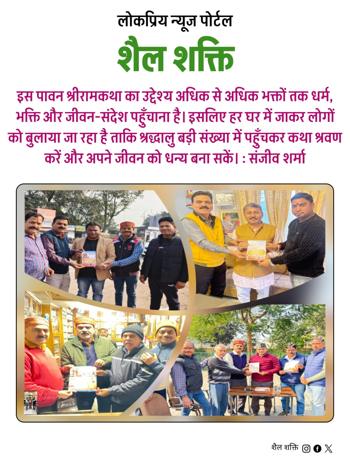 उन्होंने कहा कि इस पावन श्रीरामकथा का उद्देश्य अधिक से अधिक भक्तों तक धर्म, भक्ति और जीवन-संदेश पहुँचाना है। इसलिए हर घर में जाकर लोगों को बुलाया जा रहा है ताकि श्रद्धालु बड़ी संख्या में पहुँचकर कथा श्रवण करें और अपने जीवन को धन्य बना सकें।