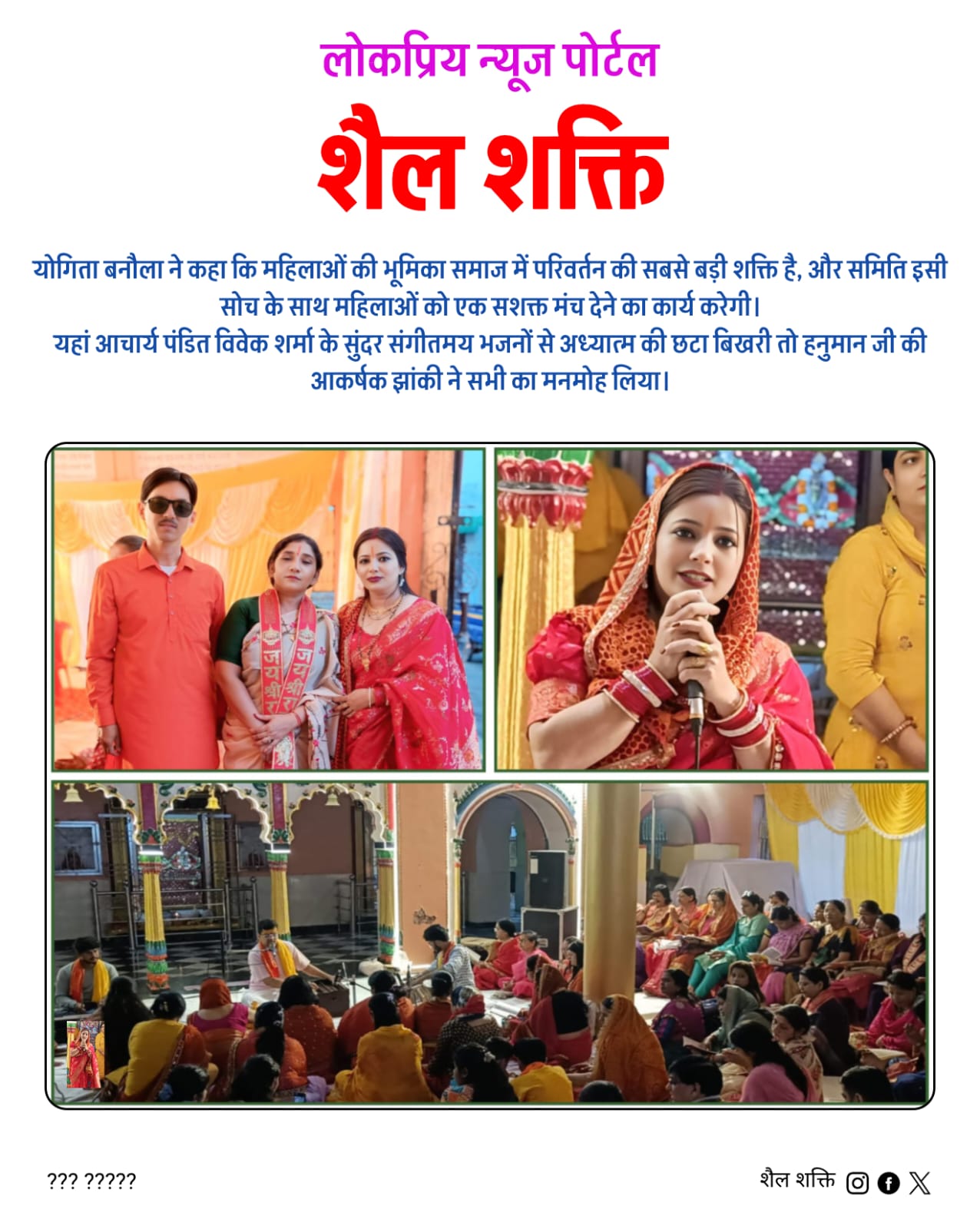 इस अवसर पर समिति अध्यक्षा योगिता बनौला ने जानकारी देते हुए बताया कि यह कार्यक्रम समिति के सामाजिक एवं जनसेवी कार्यों के शुभारंभ के रूप में आयोजित किया गया। समिति का उद्देश्य समाज में सेवा, सहयोग और संघर्ष की भावना को सशक्त बनाना है।