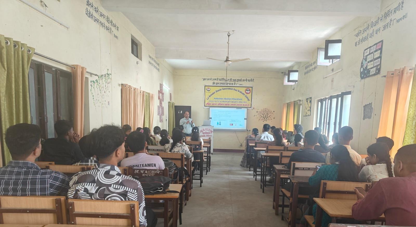 कार्यक्रम में विषय विशेषज्ञ के रूप में राजकीय महाविद्यालय हल्द्वानी शहर के गणित विभाग के प्राध्यापक डॉo प्रकाश चंद्र मठपाल उपस्थित थे। डॉo मठपाल ने विस्तार से IPR पर जानकारी दी। उन्होंने कहा कि बौद्धिक संपदा अधिकार एक व्यक्ति या संगठन के मानसिक सृजन को सुरक्षित रखने के लिए बनाए गए कानूनी अधिकार हैं। इन कानून अधिकारों की जानकारिंसे व्यक्ति मानसिक सृजन को सुरक्षित रखकर आर्थिक लाभ अर्जित कर सकता है। डॉo मठपाल ने विभिन्न पेटेंटों की जानकारी दी।