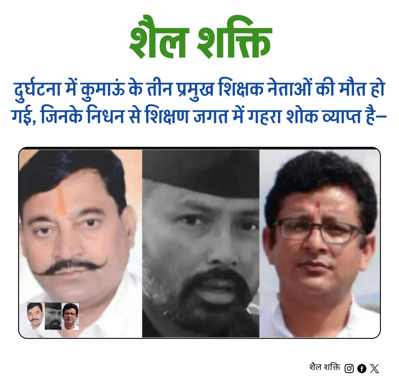 दुर्घटना में कुमाऊं के तीन प्रमुख शिक्षक नेताओं की मौत हो गई, जिनके निधन से शिक्षण जगत में गहरा शोक व्याप्त है—