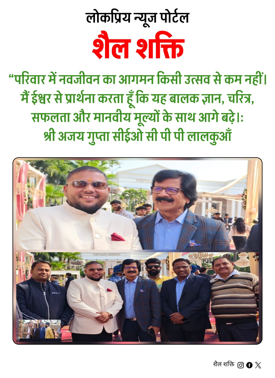हल्द्वानी स्थित एक भव्य बैंक्वेट हॉल में आयोजित नामकरण संस्कार समारोह में उत्सव और सौहार्द का अद्भुत संगम देखने को मिला। सेंचुरी पल्प एंड पेपर मिल वर्कर्स यूनियन के अध्यक्ष श्री अमन सुयाल एवं श्रीमती मनीषा सुयाल के नवजात पुत्र के नामकरण संस्कार पर पहुंचे सेंचुरी मिल के सीईओ श्री अजय गुप्ता ने सुयाल दम्पति को हार्दिक शुभकामनाएँ देते हुए बालक के दीर्घायु, मंगलमय, यशस्वी और उज्ज्वल भविष्य की कामना की।