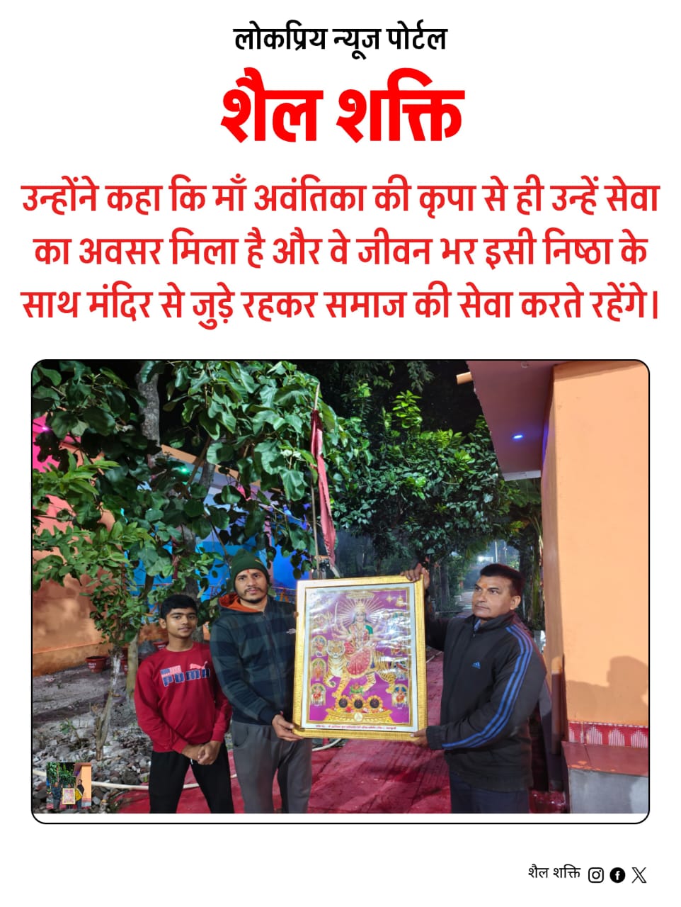 समारोह के दौरान आचार्य जोशी ने कहा कि श्री उप्रेती जी की माँ अवंतिका के प्रति गहरी निष्ठा और लगातार सेवा भाव मंदिर परिवार के लिए प्रेरणा का स्रोत है। वर्षों से वे मंदिर के कार्यों, धार्मिक अनुष्ठानों और सेवा के कार्यों में महत्वपूर्ण योगदान देते आए हैं।