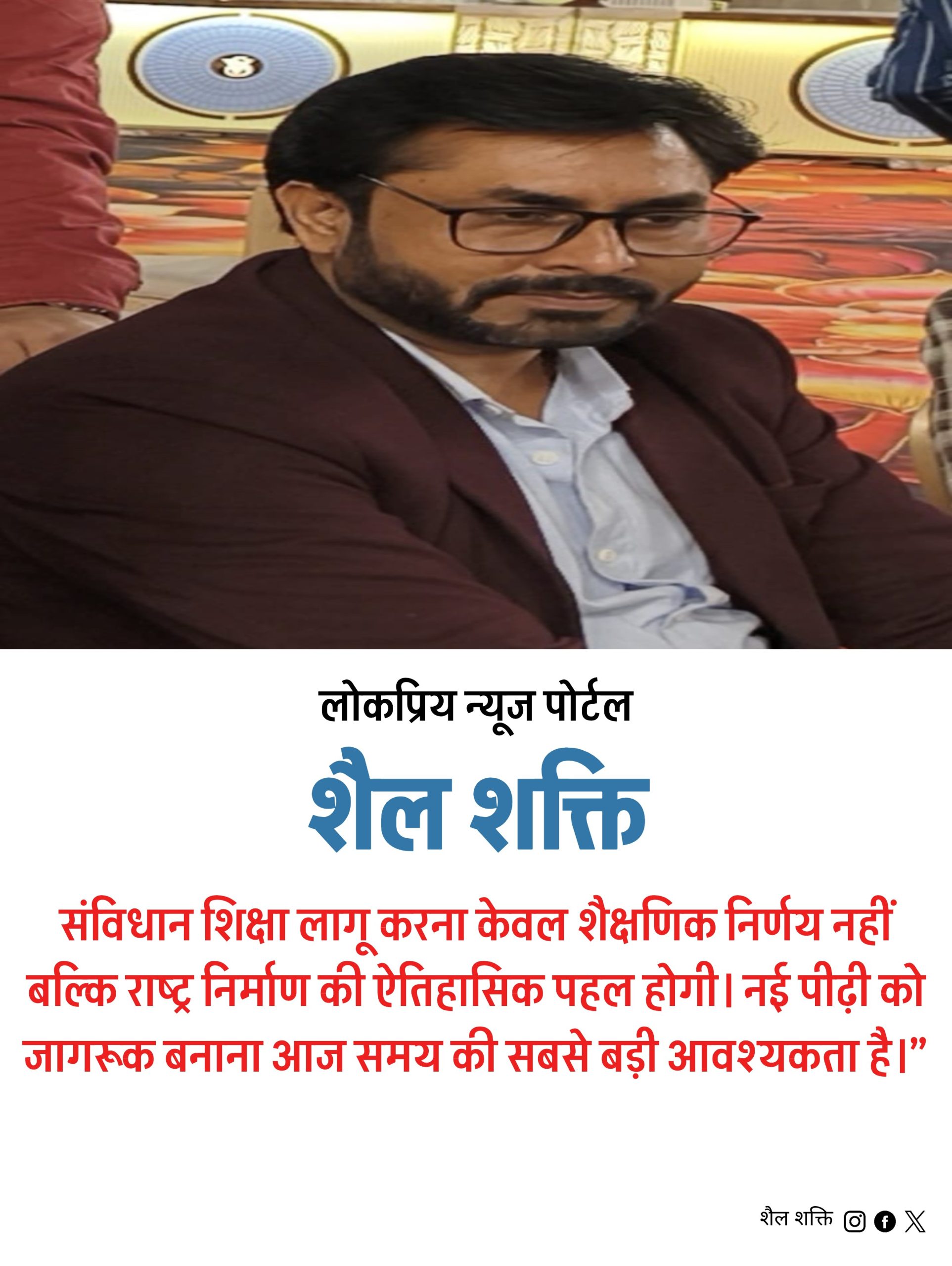 यह प्रस्ताव न केवल विद्यार्थियों में संविधान की समझ बढ़ाने के उद्देश्य से है, बल्कि नागरिक चेतना, कर्तव्यबोध और राष्ट्र भावना को मजबूत करने की दिशा में एक महत्वपूर्ण पहल मानी जा रही है।