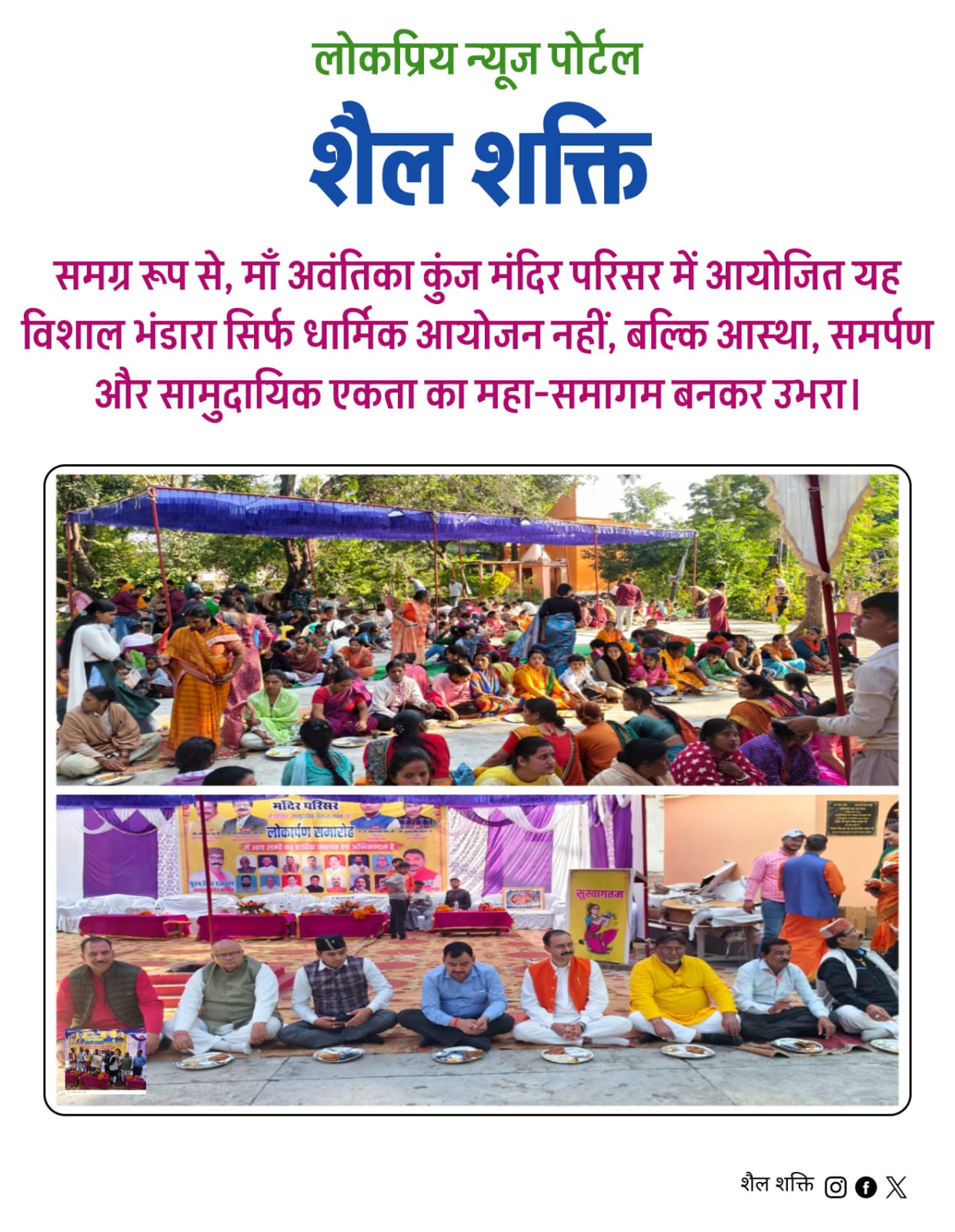 समग्र रूप से, माँ अवंतिका कुंज मंदिर परिसर में आयोजित यह विशाल भंडारा सिर्फ धार्मिक आयोजन नहीं, बल्कि आस्था, समर्पण और सामुदायिक एकता का महा-समागम बनकर उभरा।