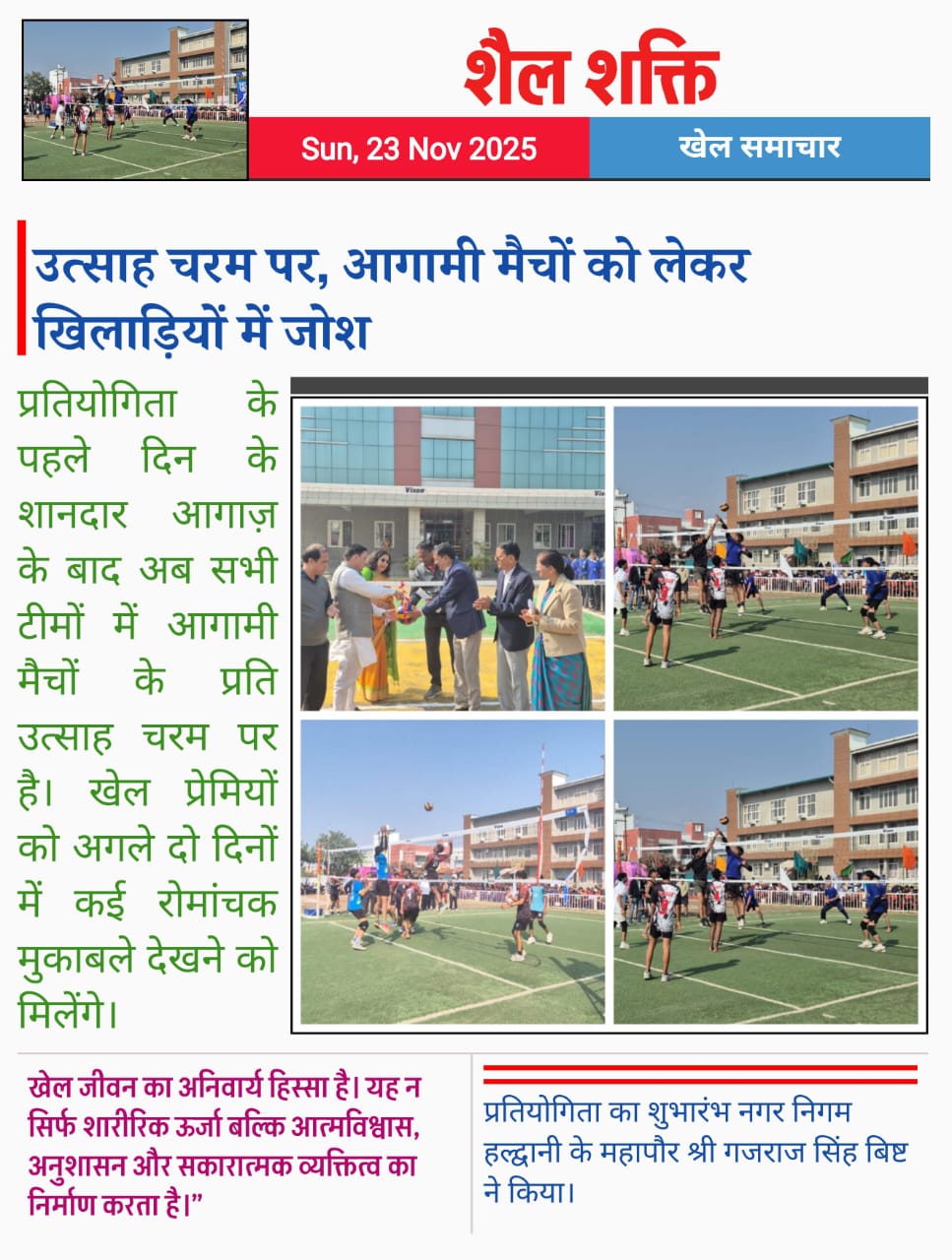 यूनिवर्सल कान्वेंट सीनियर सेकेंडरी स्कूल, हल्द्वानी में आज 15वें ‘यूनिवर्सल कप’ अंतरविद्यालयी वॉलीबॉल प्रतियोगिता का भव्य शुभारंभ हुआ। तीन दिवसीय यह वार्षिक खेल महोत्सव पूरे क्षेत्र के खिलाड़ियों के लिए एक बड़ा मंच बन चुका है।