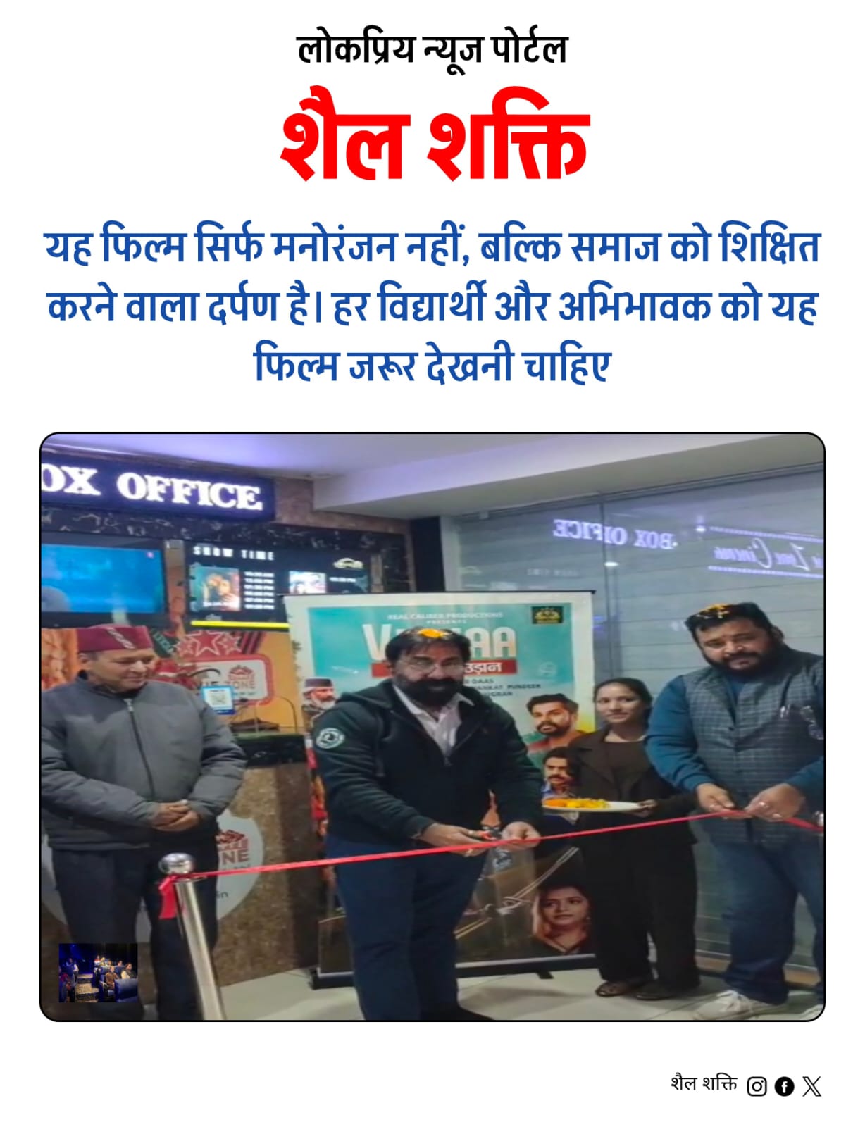 हल्द्वानी। समाज में शिक्षा के महत्व और सपनों की उड़ान को नई दिशा देने वाली हिंदी फीचर फिल्म ‘विद्या – सपनों की उड़ान’ का पहला शो आज 28 नवंबर को मूवीजोन हल्दूचौड़ में भव्य रूप से आयोजित किया गया। रियल कैलिबर प्रोडक्शन के बैनर तले बनी इस प्रेरणादायक फिल्म का शुभारंभ भाजपा के वरिष्ठ नेता और प्रसिद्ध उद्यमी हेमंत (राजू) नरूला ने रिबन काटकर किया। इस दौरान मानव विकास एवं संस्थान के सचिव पूनम चंद्र ने तिलक लगाकर अतिथियों का स्वागत किया। फिल्म का नियमित प्रदर्शन प्रतिदिन दोपहर 3:30 बजे मूवीजोन, बरेली रोड हल्दुचौड़ में किया जाएगा।