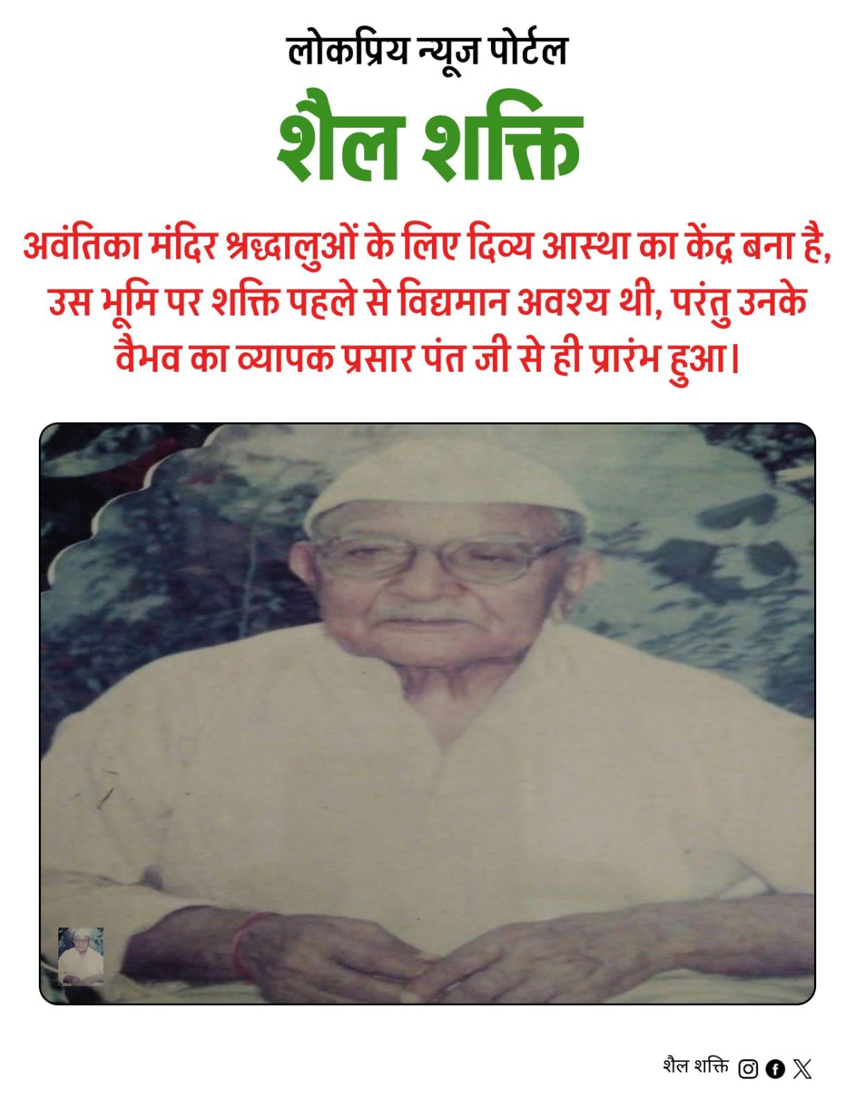 जिस स्थान पर आज भव्य माँ अवंतिका मंदिर श्रद्धालुओं के लिए दिव्य आस्था का केंद्र बना है, उस भूमि पर शक्ति पहले से विद्यमान अवश्य थी, परंतु उनके वैभव का व्यापक प्रसार पंत जी से ही प्रारंभ हुआ।