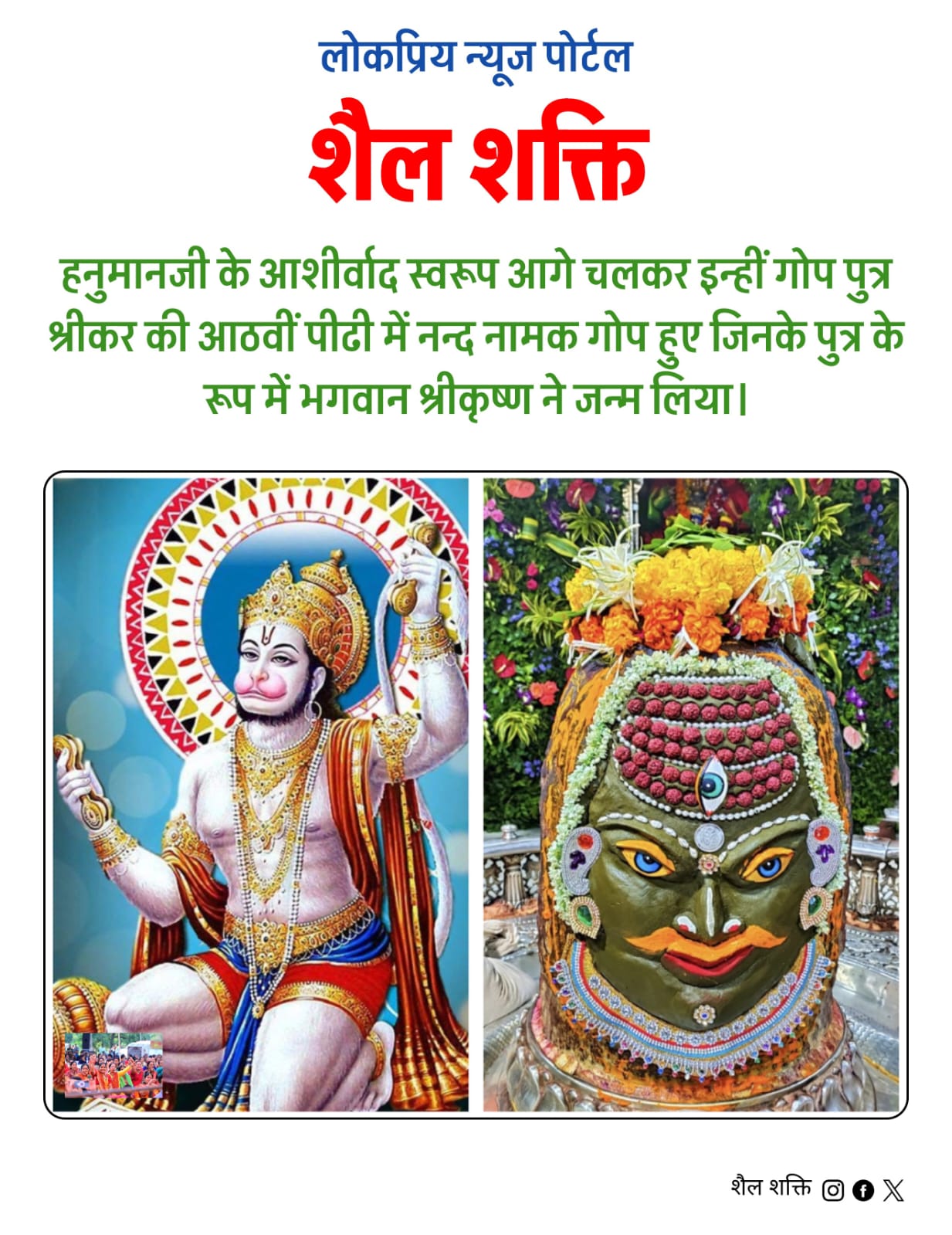 हनुमानजी के आशीर्वाद स्वरूप आगे चलकर इन्हीं गोप पुत्र श्रीकर की आठवीं पीढी में नन्द नामक गोप हुए जिनके पुत्र के रूप में भगवान श्रीकृष्ण ने जन्म लिया।