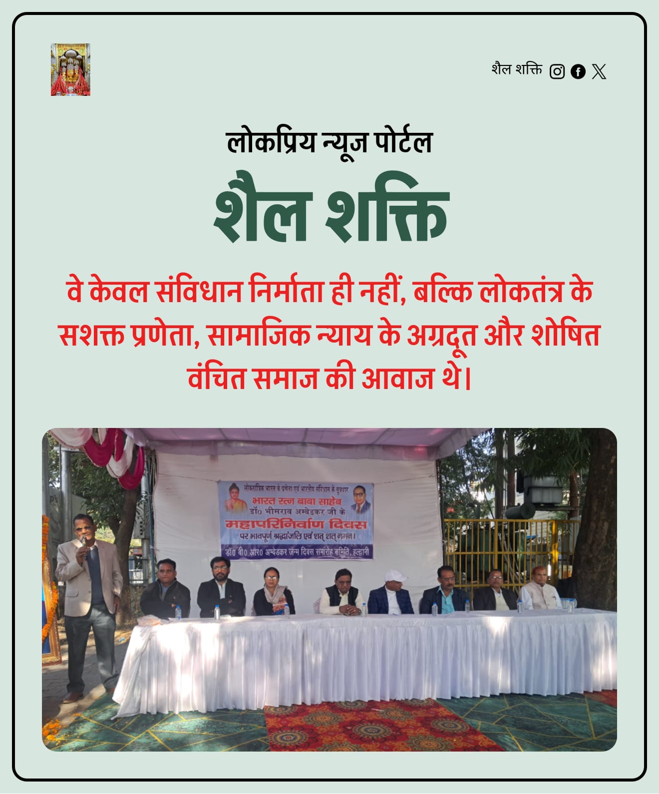 कार्यक्रम के दौरान वक्ताओं ने कहा कि बाबा साहेब का 06 दिसंबर 1956 को दिल्ली में निधन हुआ था। वे केवल संविधान निर्माता ही नहीं, बल्कि लोकतंत्र के सशक्त प्रणेता, सामाजिक न्याय के अग्रदूत और शोषित वंचित समाज की आवाज थे। उनका संपूर्ण जीवन समानता, शिक्षा और अधिकारों के लिए समर्पित रहा, जो आज भी पूरे देश को प्रेरणा देता है।