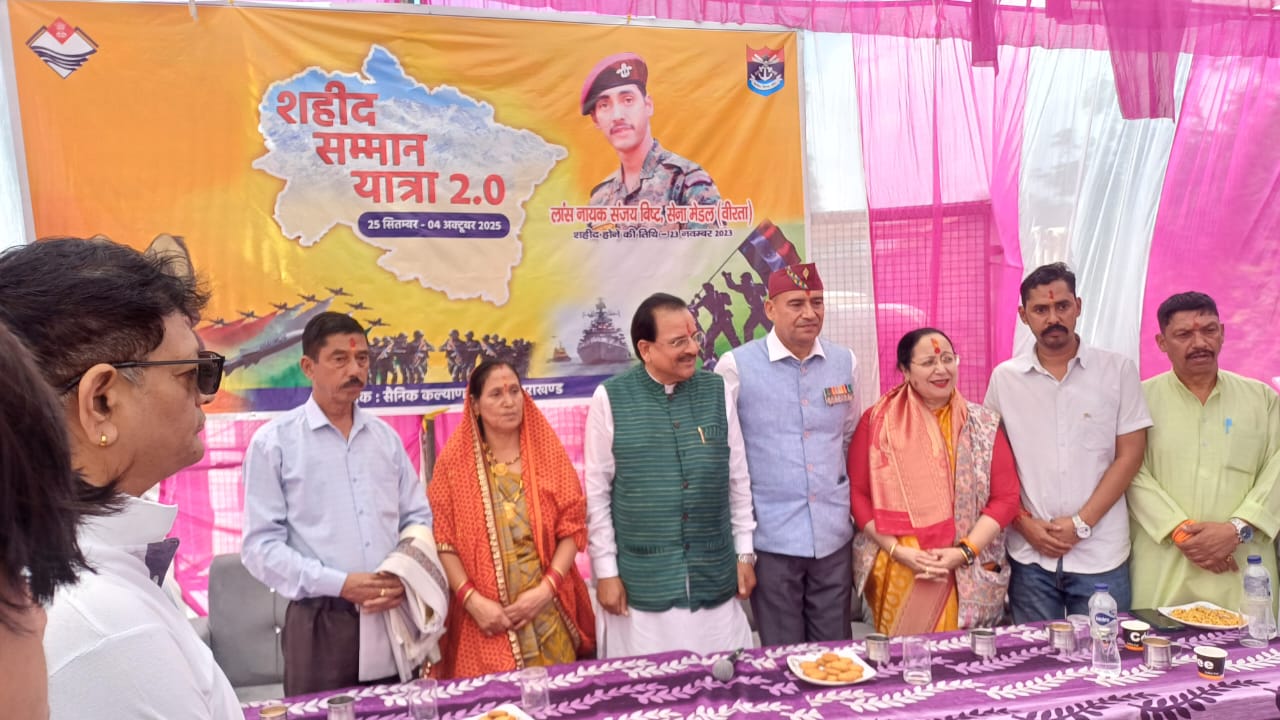 बता दें कि उत्तराखण्ड राज्य के तमाम हिस्सों में 22 सितम्बर 2025 से 04 अक्टूबर 2025 तक शहीद सम्मान यात्रा 2.0 का आयोजन किया जा रहा है। इससे पूर्व, वर्ष 2021 से पूर्व के बीर बलिदानी सैनिकों को सम्मानित करते हुए उनके घर के आंगन से पवित्र मिट्टी एकत्रित कर सैन्यधाम में प्रतिस्थापित की गयी थी। शहीद सम्मान यात्रा 2.0 का उद्देश्य वर्ष 2021 के बाद जो सैनिक वीरगति को प्राप्त हुए है, उनको सम्मानित करते हुए उनके घर आंगन की मिट्टी को एकत्रित कर सैन्य धाम में प्रतिस्थापित किया जाना है।