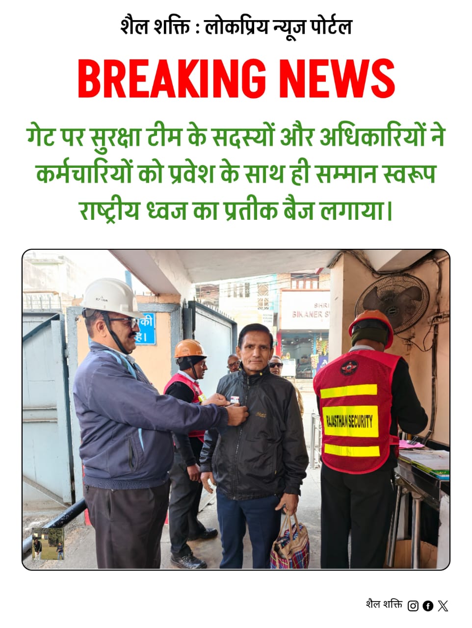 गेट पर सुरक्षा टीम के सदस्यों और अधिकारियों ने कर्मचारियों को प्रवेश के साथ ही सम्मान स्वरूप राष्ट्रीय ध्वज का प्रतीक बैज लगाया। इस पहल का उद्देश्य देश की सेना, अर्धसैनिक बलों और उन शहीदों को याद करना था, जिन्होंने राष्ट्र की सुरक्षा में अपने प्राण न्योछावर कर दिए।