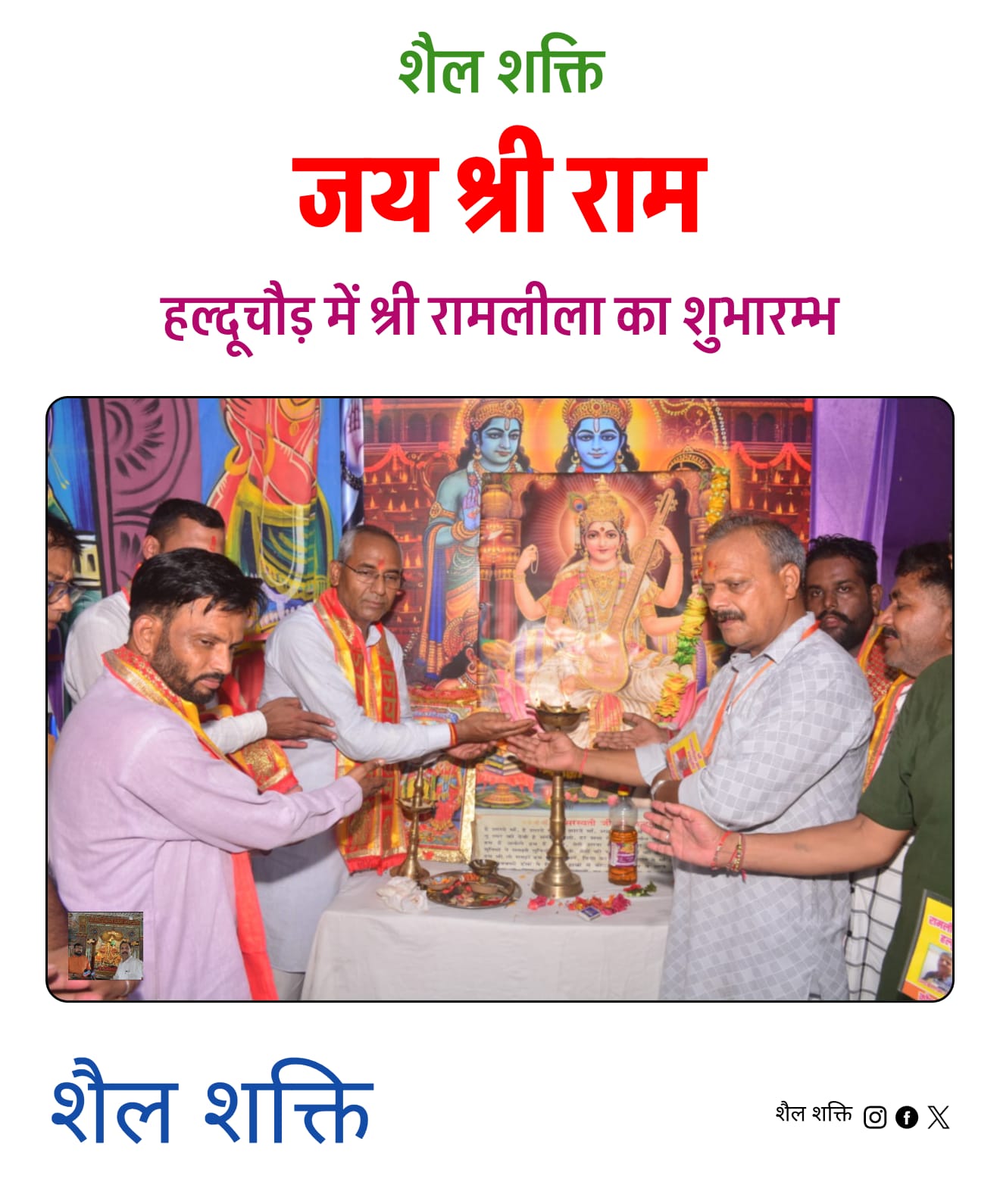 विगत कई वर्षों की भांति इस बार भी हल्दूचौड़ में रामलीला का मंचन दिन मंगलवार के साथ पूरी विधि विधान के साथ शुरू हुआ। इसका उद्घाटन हल्दूचौड़ रामलीला कमेटी के अध्यक्ष कैलाश चंद दुमका ने मुख्य अतिथि लाल कुआं विधानसभा के विधायक डॉ मोहन सिंह बिष्ट के साथ मिलकर किया। इस दौरान मंच पर संरक्षक मंडल के उमेश चंद्र कब्डवाल,नंदन दुर्गापाल, इंद्र सिंह बिष्ट ,भुवन सिंह पवार ग्राम प्रधान निर्मल जग्गी पवार ,ग्राम प्रधान राधा कैलाश भट्ट, ग्राम प्रधान मुकेश ,दुमका हरीश बिष्ट, दया किशन बमेटा दया किशन कब्डवाल पूर्व ब्लाक प्रमुख संध्या डालाकोटी, मीडिया सलाहकार योगेश दुमका आदि मौजूद रहे।