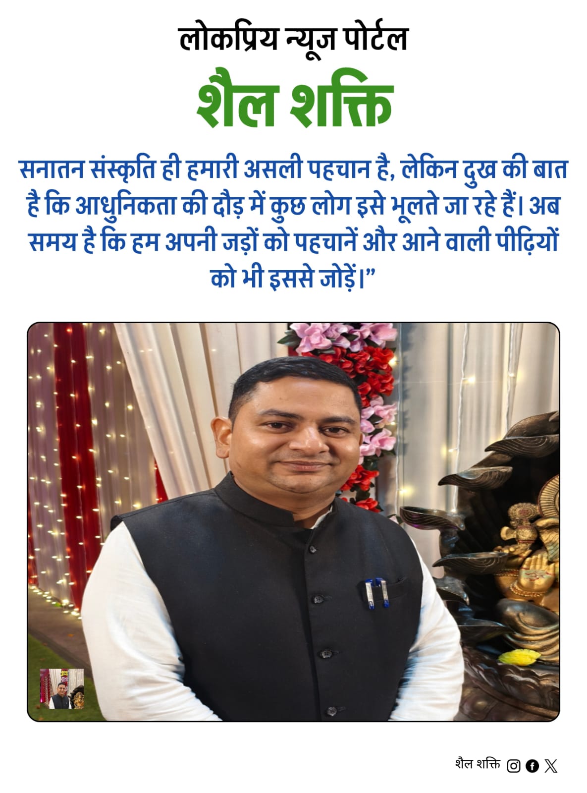 “सनातन संस्कृति ही हमारी असली पहचान है, लेकिन दुख की बात है कि आधुनिकता की दौड़ में कुछ लोग इसे भूलते जा रहे हैं। अब समय है कि हम अपनी जड़ों को पहचानें और आने वाली पीढ़ियों को भी इससे जोड़ें।”