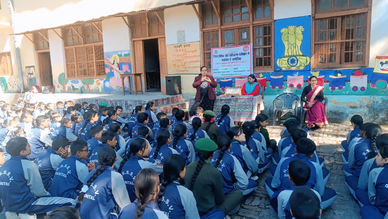 सिविल जज (सी०डि०) / सचिव, जिला विधिक सेवा प्राधिकरण, नैनीताल श्रीमती पारुल थपलियाल द्वारा 11 अक्टूबर 2025 को “अंतरराष्ट्रीय बालिका दिवस ” के उपलक्ष्य पर जिला मुख्यालय में स्थित राष्ट्रीय शहीद सैनिक स्मारक विद्यापीठ विद्यालय में विधिक साक्षरता एवं जागरुकता शिविर का आयोजन किया गया।
