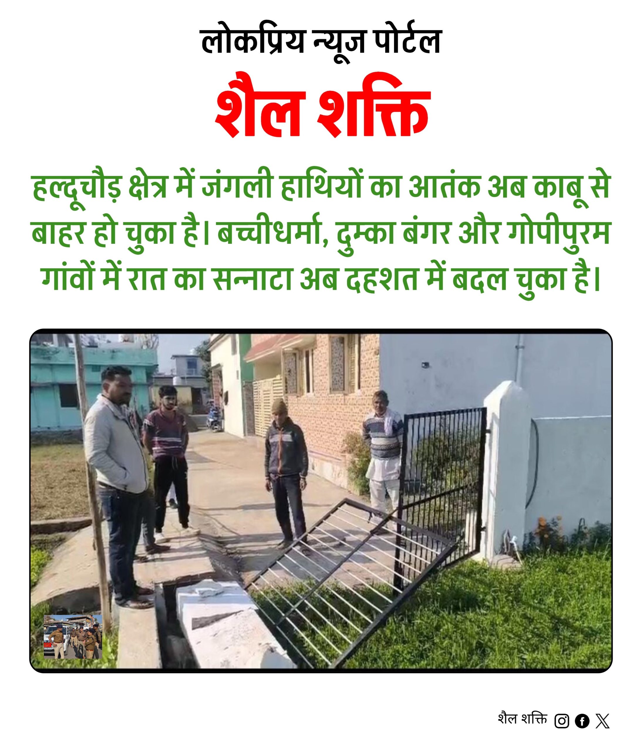 हल्दूचौड़ क्षेत्र में जंगली हाथियों का आतंक अब काबू से बाहर हो चुका है। बच्चीधर्मा, दुम्का बंगर और गोपीपुरम गांवों में रात का सन्नाटा अब दहशत में बदल चुका है। ग्रामीण हर रात इस डर में सोते हैं कि अगला निशाना उनका घर होगा या खेत।