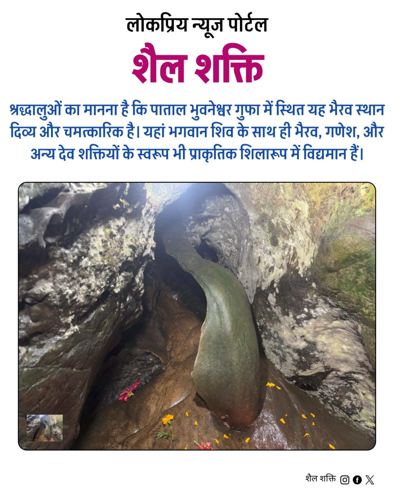 पिथौरागढ़। आज काल भैरव अष्टमी के पावन अवसर पर जिला पिथौरागढ़ के प्रसिद्ध पाताल भुवनेश्वर गुफा मंदिर में पाताल लोक के रक्षक भगवान काल भैरव की विशेष पूजा-अर्चना संपन्न हुई। प्राचीन गुफा के गर्भगृह में सुबह से ही श्रद्धालुओं का तांता लगा रहा। इस अवसर पर मंदिर परिसर में धार्मिक अनुष्ठानों, मंत्रोच्चार और दीप प्रज्वलन के साथ दिनभर भक्ति का वातावरण बना रहा।