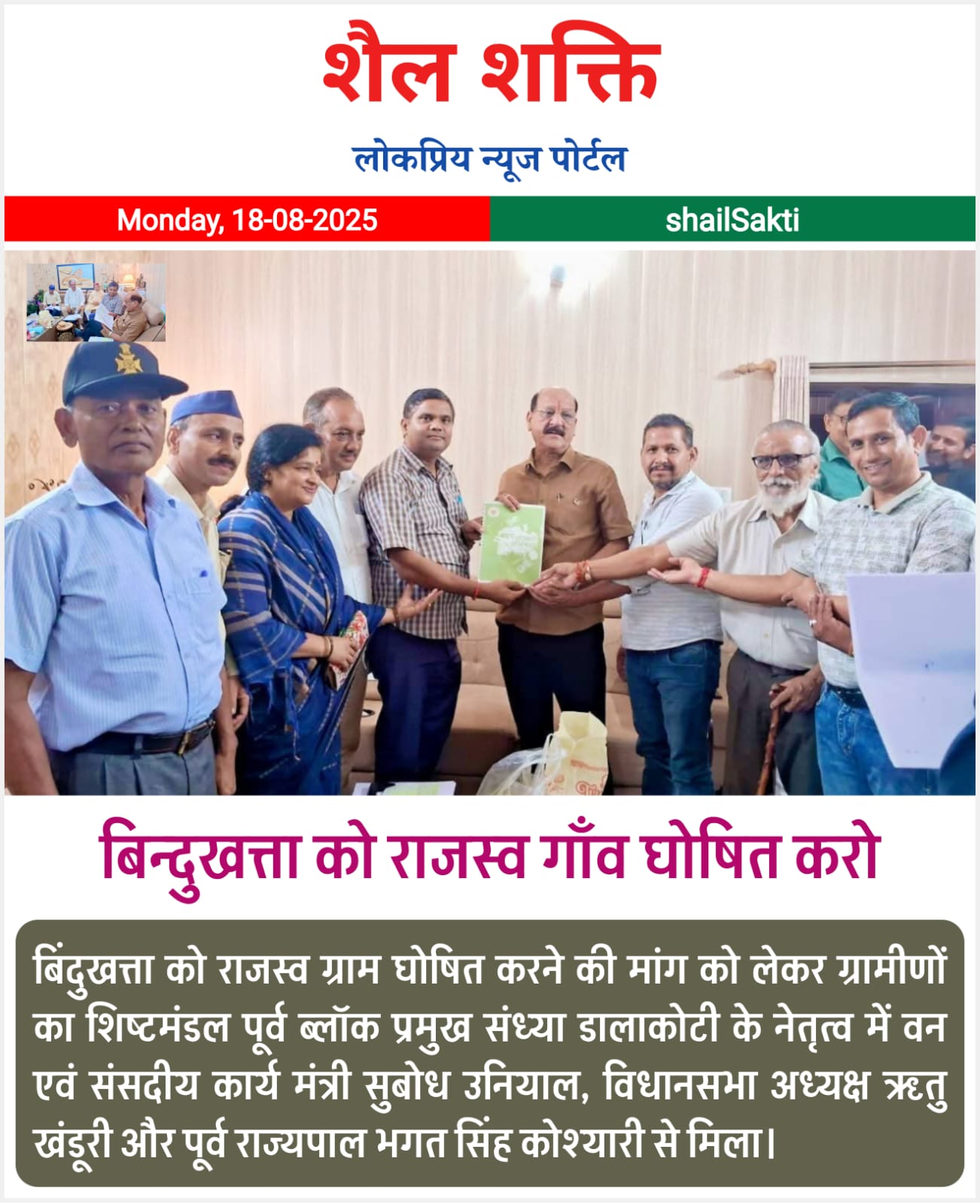 शिष्टमंडल ने विधानसभा अध्यक्षा ऋतु खंडूरी और पूर्व मुख्यमंत्री भगत सिंह कोश्यारी से भी आग्रह किया कि बिंदुखत्ता राजस्व ग्राम की अधिसूचना जल्द जारी कराई जाए।