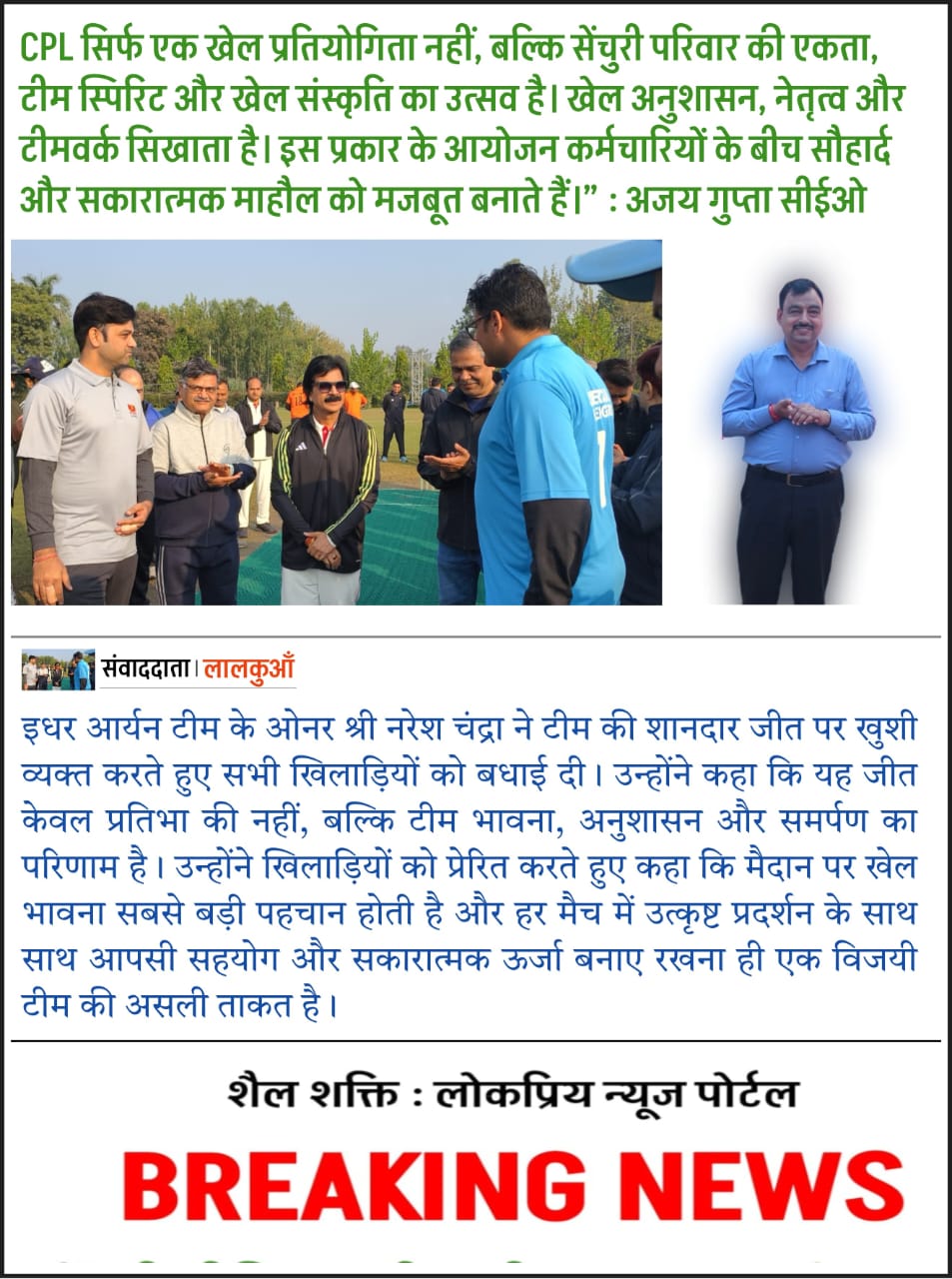 “CPL सिर्फ एक टूर्नामेंट नहीं, बल्कि सेंचुरी परिवार की टीम भावना और एकजुटता का उत्सव है।