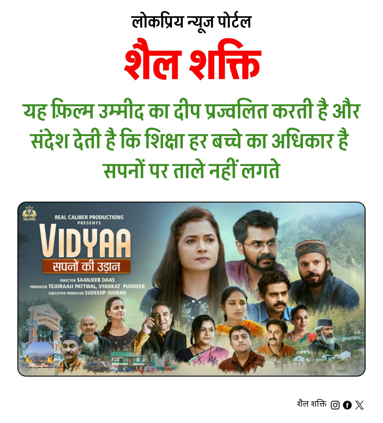 समाज को जागरूकता और नई दिशा देने वाली हिंदी फीचर फिल्म ‘विद्या – सपनों की उड़ान’ अब हल्द्वानी के बड़े परदे पर दर्शकों के लिए प्रस्तुत होने जा रही है। रियल कैलिबर प्रोडक्शन के बैनर तले निर्मित यह फिल्म 28 नवंबर से 4 दिसंबर 2025 तक मूवीजोन, बरेली रोड हल्दुचौड़ में प्रदर्शित की जाएगी। फिल्म का शो प्रतिदिन दोपहर 3:30 बजे होगा।