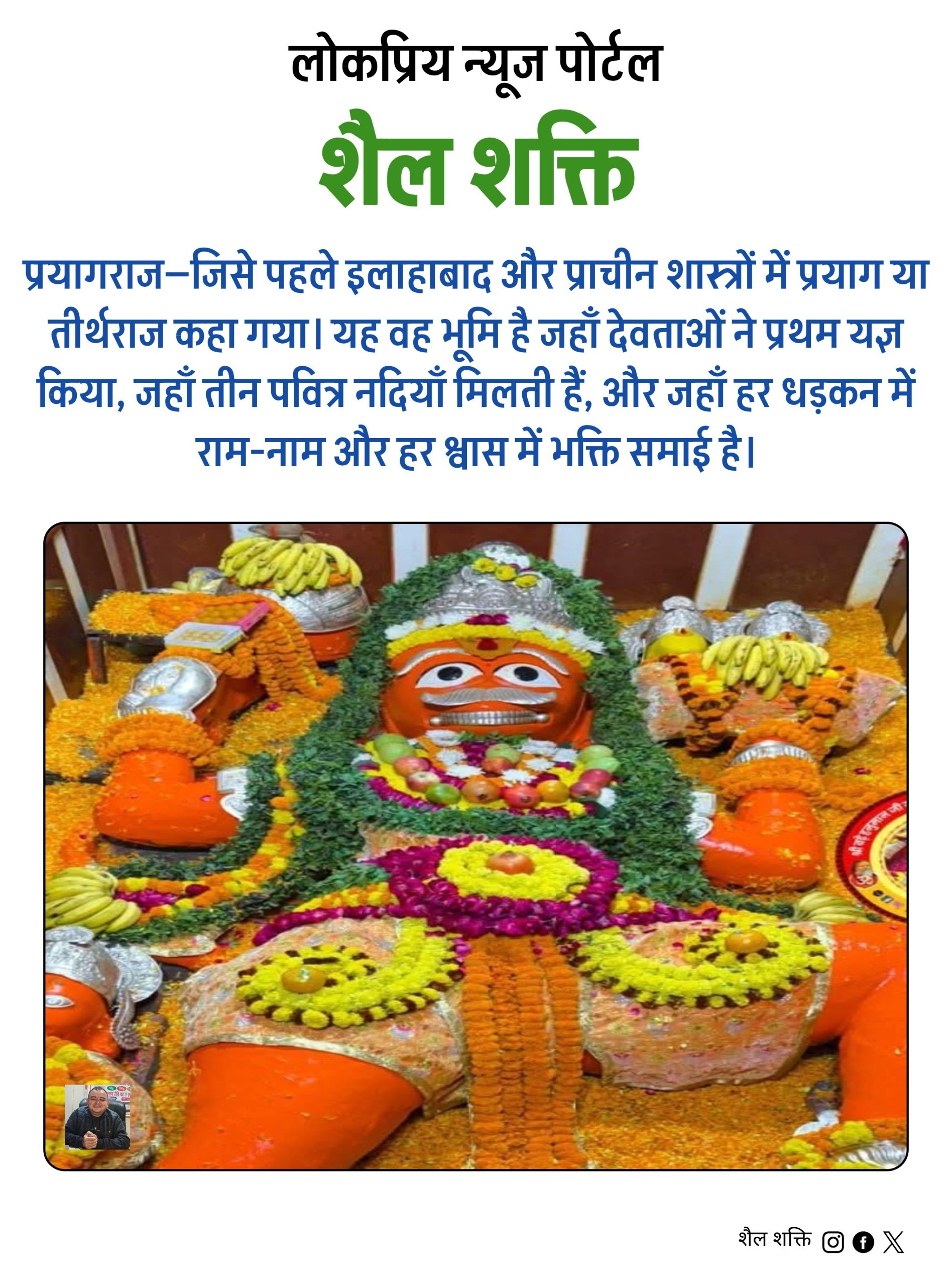 प्रयागराज जिसे पहले इलाहाबाद और प्राचीन शास्त्रों में प्रयाग या तीर्थराज कहा गया। यह वह भूमि है जहाँ देवताओं ने प्रथम यज्ञ किया, जहाँ तीन पवित्र नदियाँ मिलती हैं, और जहाँ हर धड़कन में राम-नाम और हर श्वास में भक्ति समाई है।इसी दिव्य भूमि पर स्थित है विश्वप्रसिद्ध लेटे हुए हनुमान जी का मंदिर।