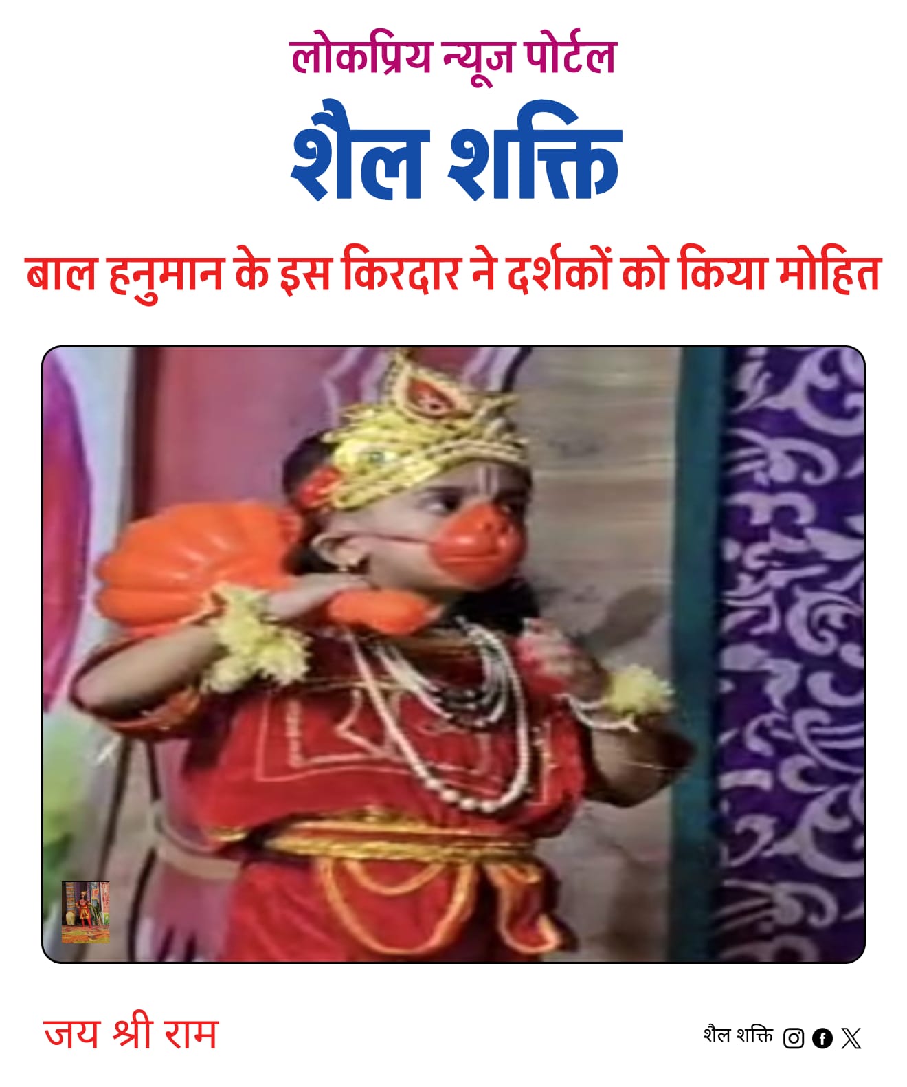 आदर्श रामलीला के मंचन में बाल हनुमान की चंचलता सभी दर्शकों के आकर्षण का केन्द्र बनी हुई है यह अभिनय शिक्षाविद् श्री शौरभ पंत व श्रीमती हिमानी पंत के सुपुत्र तुषार पंत कर रहे है